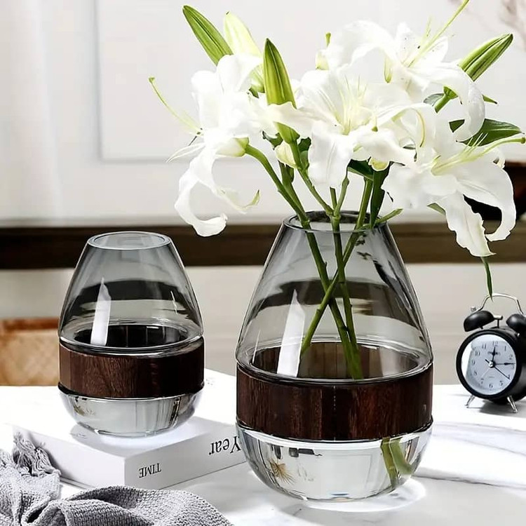 گلدان شیشه ای با طرح چوب بامبو خمره ایی دارای کیفیت و شفافیت بالا وارداتی ساخت (چین) سایز کوچک